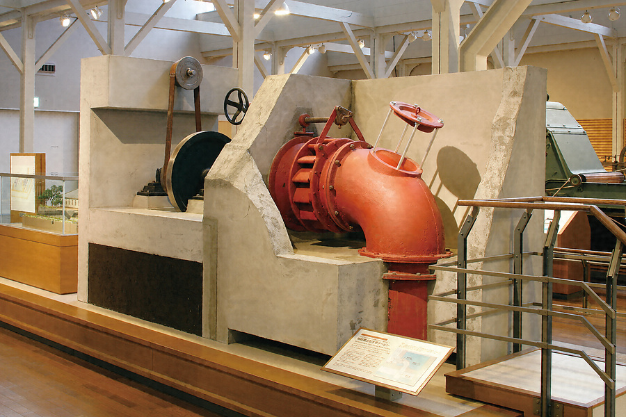 横軸露出型水車タービンは、現在でも水力発電用として使われているフランシス水力タービンの原形のもので、渦巻き室がなく、水槽をケーシングにしている。第2次世界大戦前までは小規模な水力発電や工場動力として、主に山間部で使われていた。