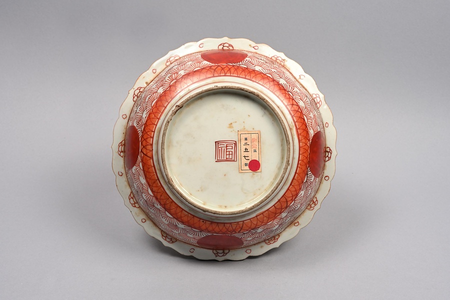 赤絵猪文稜花鉢