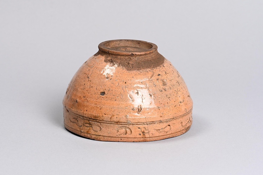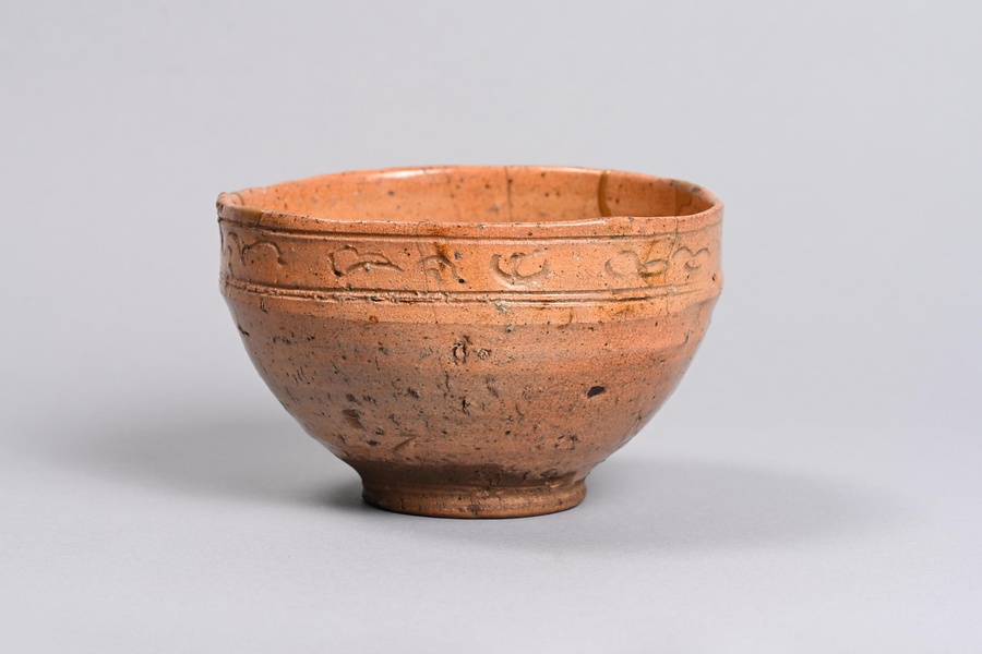 赤楽鳥波刻文茶碗