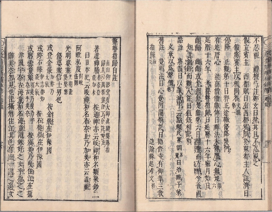延暦16年(797)成立の空海著「三教指帰」の注釈書。宝永4年(1707)刊。編者は梅国泰音。江戸時代に広く普及した注釈書の運敞編「三教指帰註刪補」をさらに補注したものである。四国関係の記述では「三教指帰」にて空海が修行した場所として「石峯」(伊志都知太気)、「金巌」(加祢乃太気)が登場するが、その注釈として「按金巌在伊予国」、「按石槌嶽在伊予国」と記され、空海が伊予国(愛媛県)にて修行したと注釈している。