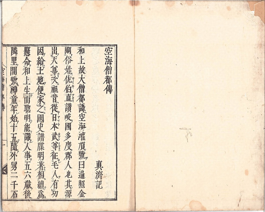 空海の没後間もない時期に成立した伝記。空海の十大弟子・真済が著したとされるが諸説ある。空海を人間的に扱い、未だ神格化されていない内容であり、弘法大師の諡号が下賜された延喜21年(921)以前の撰述で、空海の伝記としては古いものである。本資料は正徳6年(1716)刊。