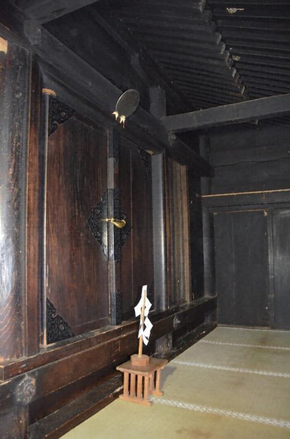 本殿側面に床下への出入口を設けるほか、床下内部で柱を1本抜き、床組より下部に足固貫などの柱を繋ぐ材を用いず、建立当初から床下を利用しようとした意図が伺える。また、床上、床下とも内部は煤により黒く変色しており、本殿床下で僧侶が護摩を焚き、読経したと伝えられており、近世の神社祭祀の一形態を示していると考えられる。