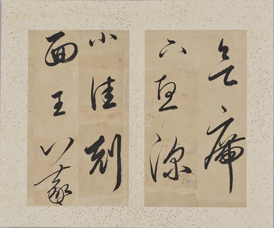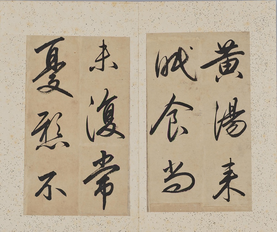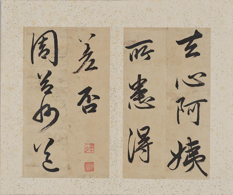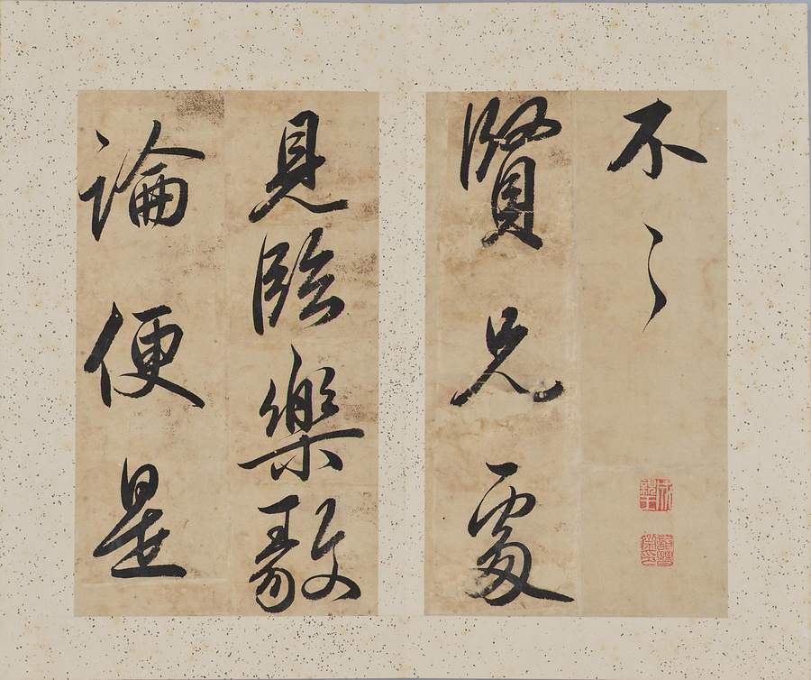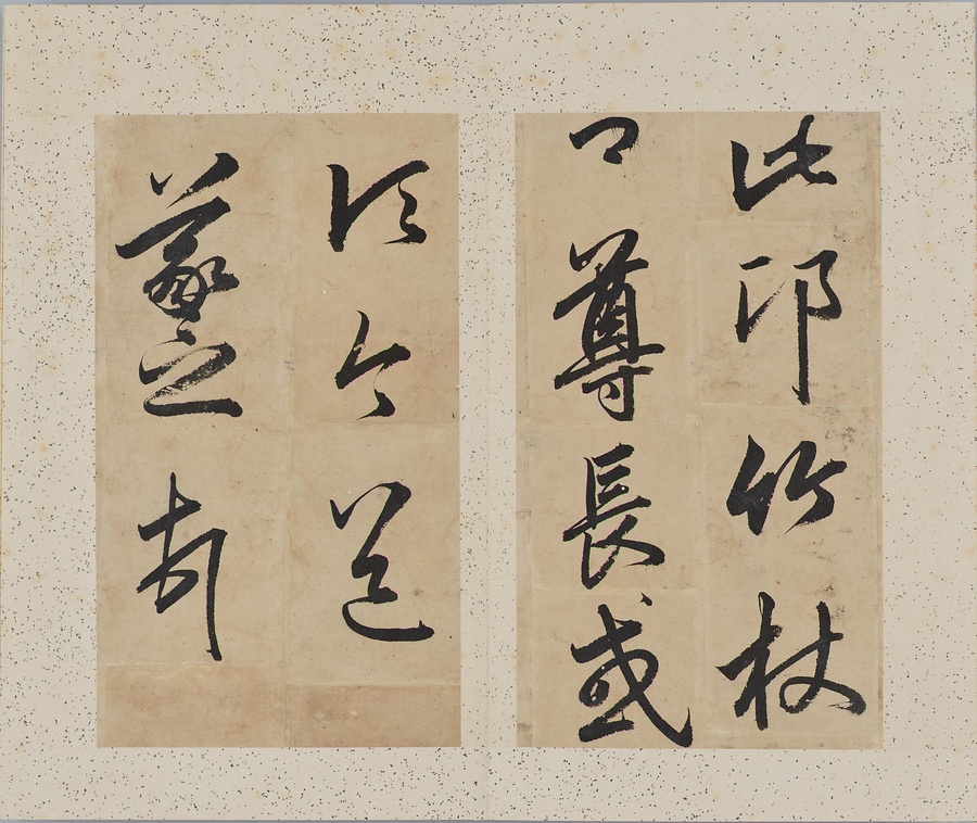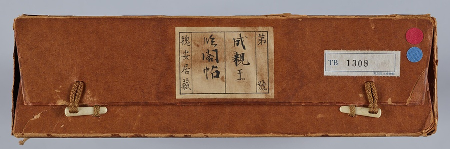 成親王(愛新覚羅永瑆@あいしんかくらえいせい@)は乾隆帝の第十一子。書画と収蔵を善くし、書は元の趙孟頫@ちょうもうふ@、唐の欧陽詢@おうようじゅん@を学びました。また成親王の書を集刻した法帖には、王羲之をはじめとする歴代の名跡の臨書が収録されます。本作は、王羲之の思想帖、得足下書帖、王献之@おうけんし@の地黄湯帖などの諸帖の一節を任意に臨書したもの。