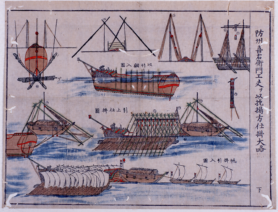 長崎蘭船挽揚図解○防州喜右衛門工夫ヲ以挽揚方仕掛大略 下