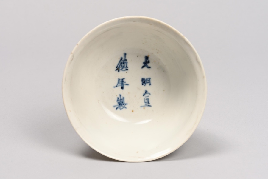 青花唐草文饅頭心碗 大明宣徳年製銘