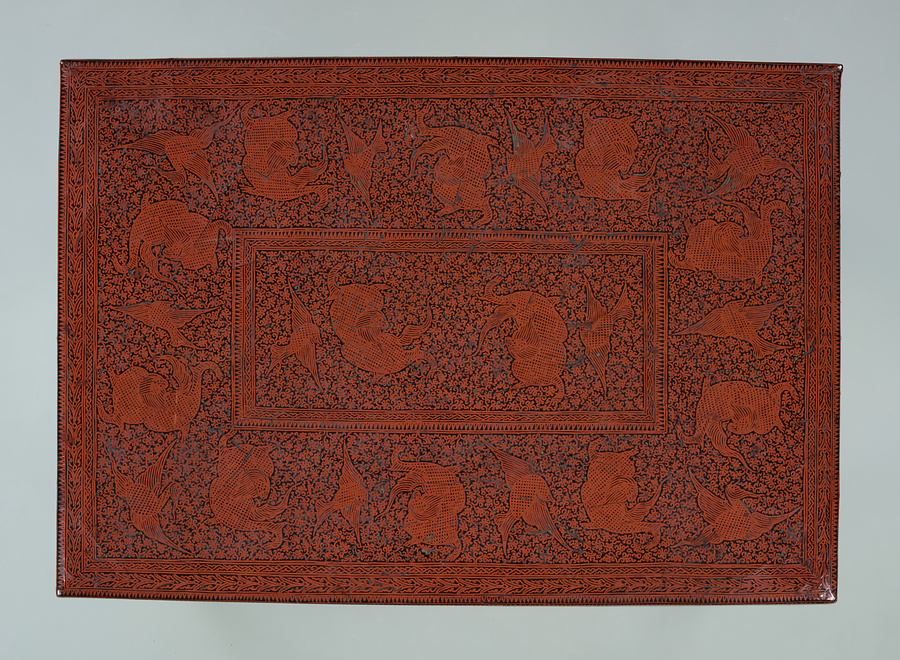 蓮池鯉文漆絵卓
