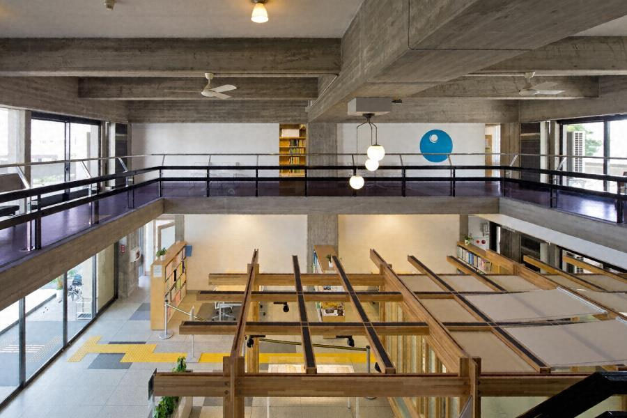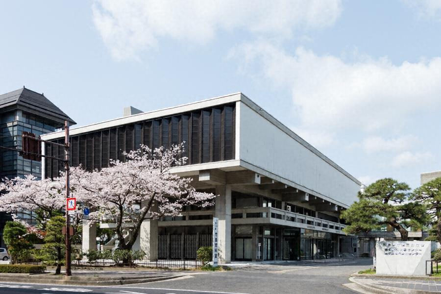 松江城の南側に建つ、鉄筋コンクリート造の旧博物館。張出した箱状の三階を三列の柱で持上げ、一、二階はベランダや吹抜けで開放的とする。景観に馴染むよう白と黒を基調とし、屋根を折板構造とする等の工夫をしつつ、設計者菊竹清訓の作風がよく現れている。