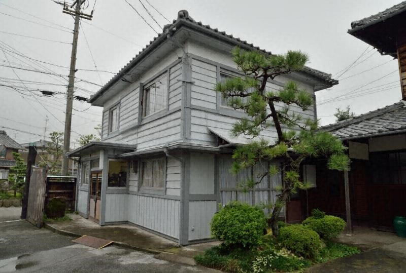 敷地南端中央の門を入って西側に建つ。木造二階建、寄棟造桟瓦葺で、西側の廊下から離れに続く。小屋はキングポストトラス組、外壁は下見板張。一階は一室で、二階は十畳二室を南北に並べ、主座敷に床、棚を備える。和風の座敷を備えた、外観洋風の事務所。