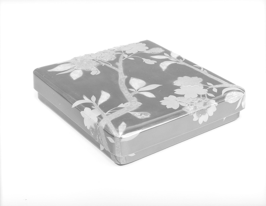 蓋表に金の平(ひら)蒔絵や螺鈿(らでん)、鉛の平文などを用いて、桜の花枝を大きく表している。貝を割って使ったり、鉛板の表面を荒らすなど、光琳に倣った蒔絵作品によく見受けられる、大胆な装飾である。無造作に切りとったかのようにみえるが、奥行きや空間の広がりを感じさせるよう計算された構図になっている。