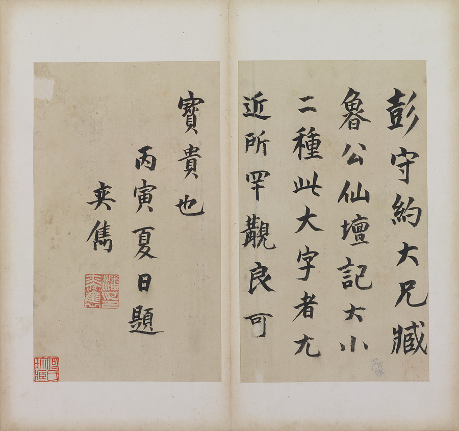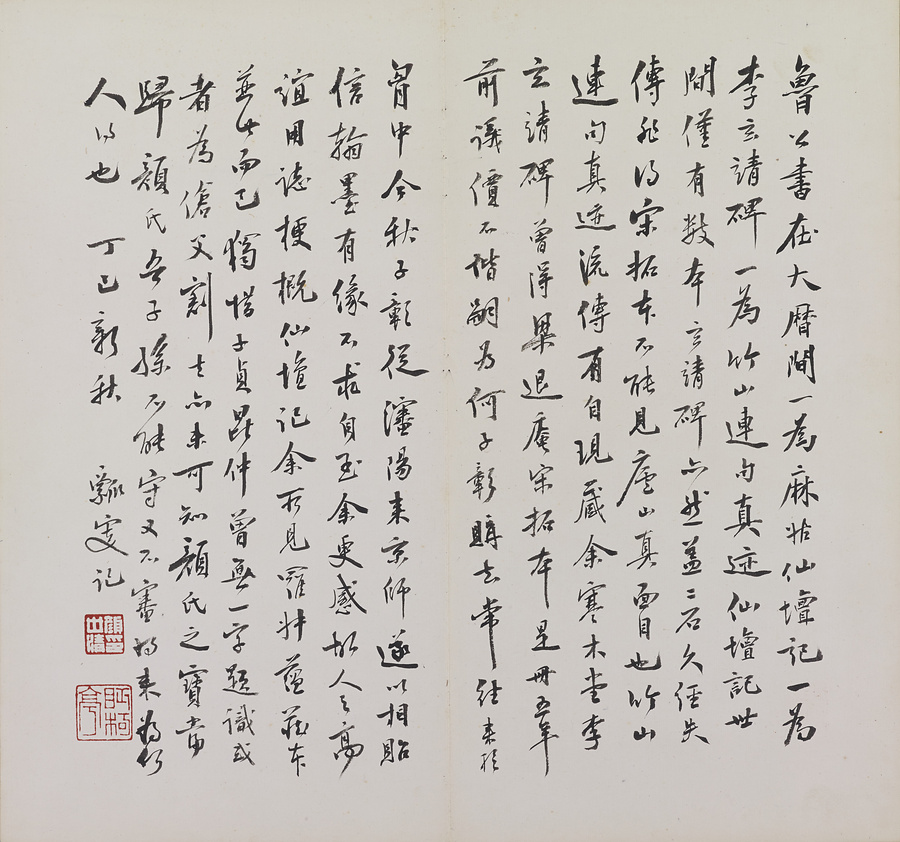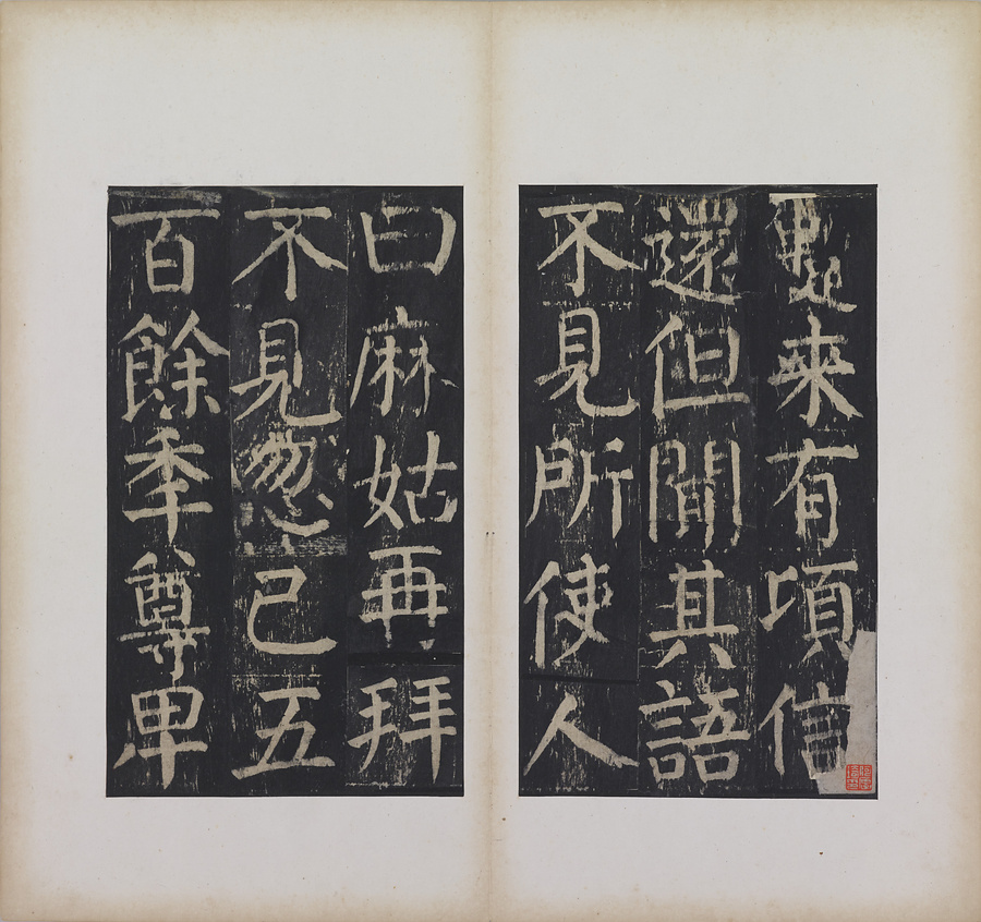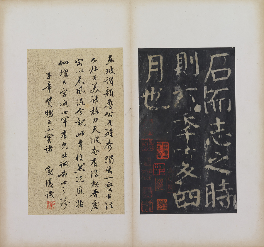 顔真卿が後漢の仙女麻姑@まこ@の事跡と、その修行場とされる江西省撫州@ぶしゅう@の麻姑山について記したもの。大字本・中字本・小字本の3種が伝わり、いずれも早くに原石は失われました。本帖は宋拓本と伝承される大字本。彭守約@ほうしゅやく@、何子京@かしけい@、彭祖賢@ほうそけん@、何厚琦@かこうき@、顔世清@がんせいせい@らの旧蔵。