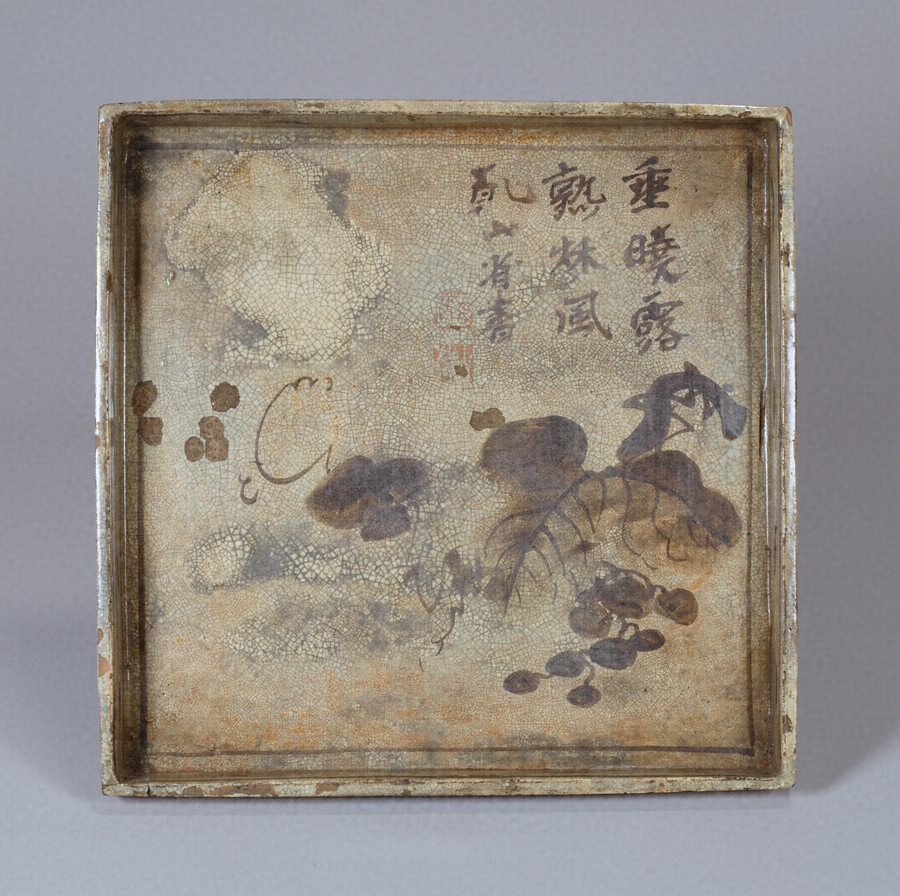 銹絵葡萄図角皿