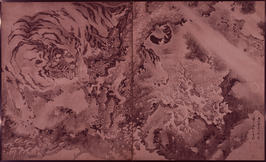虎に波図屏風