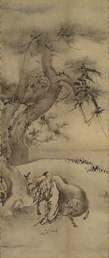 聖帝尭(ぎよう)の天下を譲(ゆず)るという申し出を聞いた許由は、耳が穢(けが)れたと水で耳を洗い、巣父は、その穢れた水を牛に飲ませず、牛を牽(ひ)いて帰ったという。高い位を嫌う理想の高士のたとえ。永徳は狩野一門の棟梁として天下人・織田信長、豊臣秀吉に仕えた。