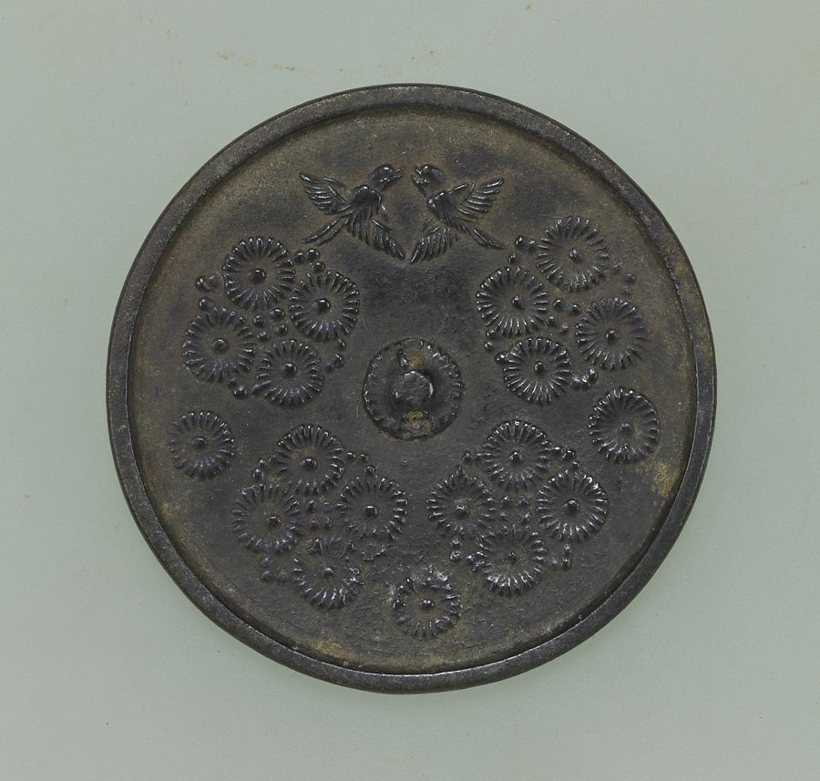 州浜菊花双鳥鏡