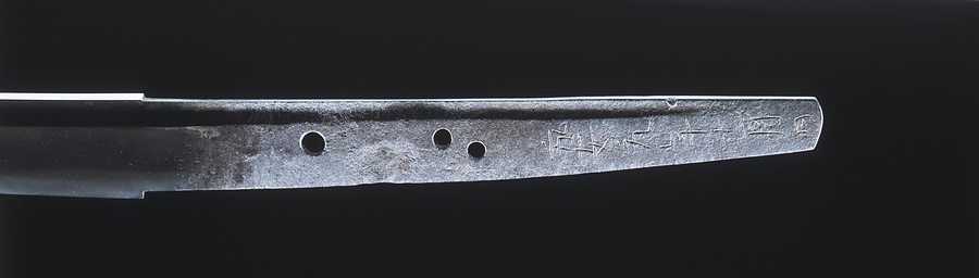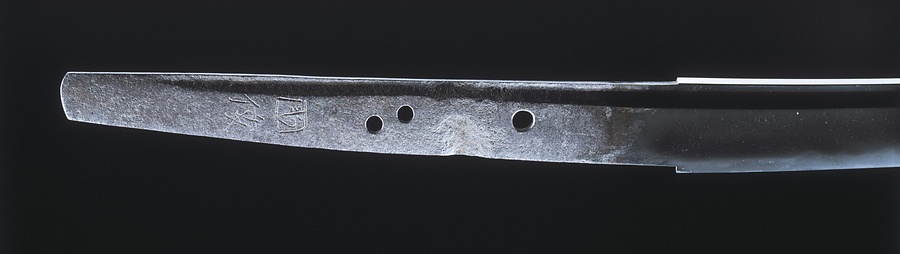 国俊は、鎌倉時代後期に京都で活躍した来@らい@派の名工です。国俊の作刀には、茎@なかご@に「国俊」と二字銘@めい@を切るもの(二字国俊)と「来国俊」と三字銘を切るもの(来国俊)があります。本品は二字国俊の典型作で、がっしりとした刀身に華やかな丁子@ちょうじ@の刃文@はもん@を焼入れています。