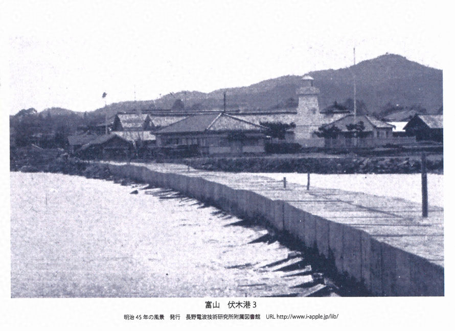 明治45年(1912)頃の富山・伏木港を写した復刻絵葉書。