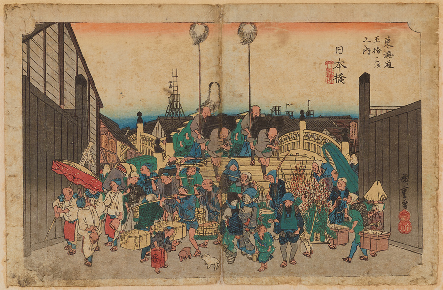 東海道五拾三次之内・日本橋 行烈振出
