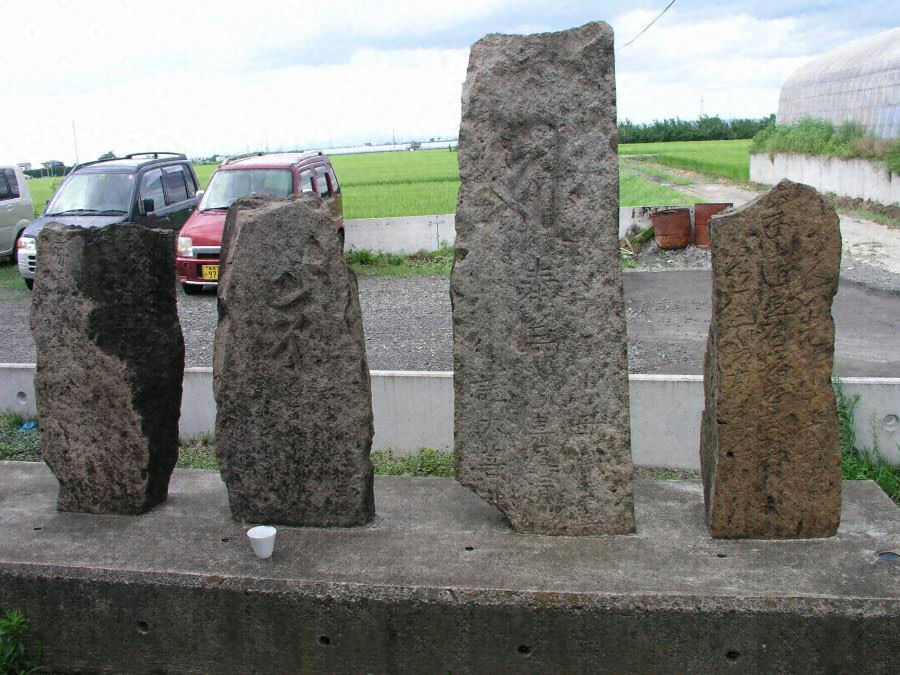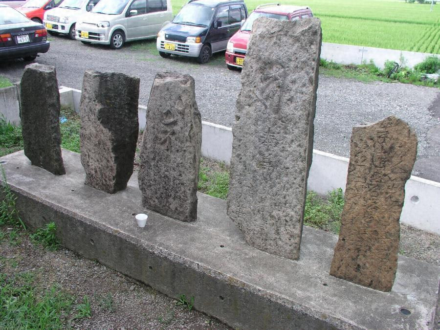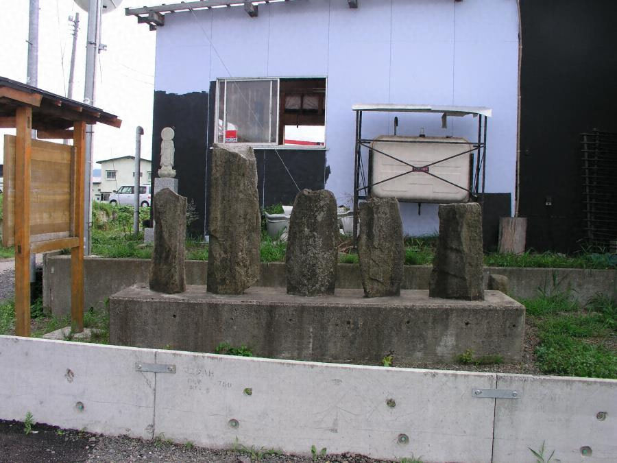 ・板碑の一般的形状の特色は、頂上を山形にし、その下に二段の切り込みと額部を作り、身部は上下に広く取り、供養の対象となる本尊を仏像または梵字の種字で表す。その下方に造立の願文、本尊を讃仰する偈(げ)、願主名、年紀などを刻む。このように多くの文字を刻むために身部の広いことが要求されて板碑形式が生まれたと言われている。