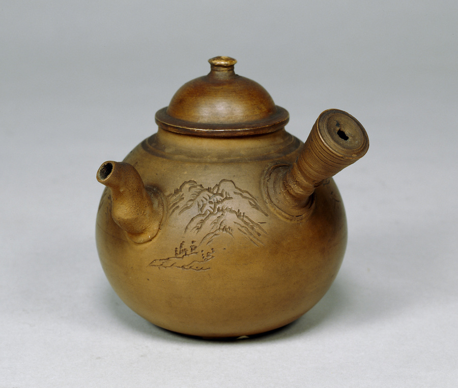 朱泥山水刻文急須