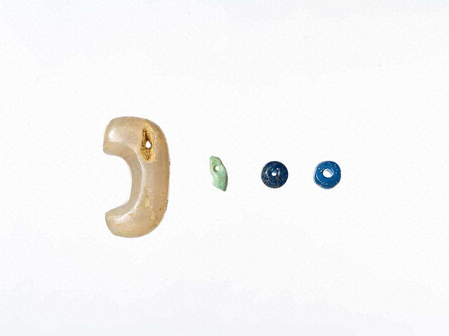 ホリノヲ2号墳 天河石製勾玉、水晶製勾玉、ガラス小玉
