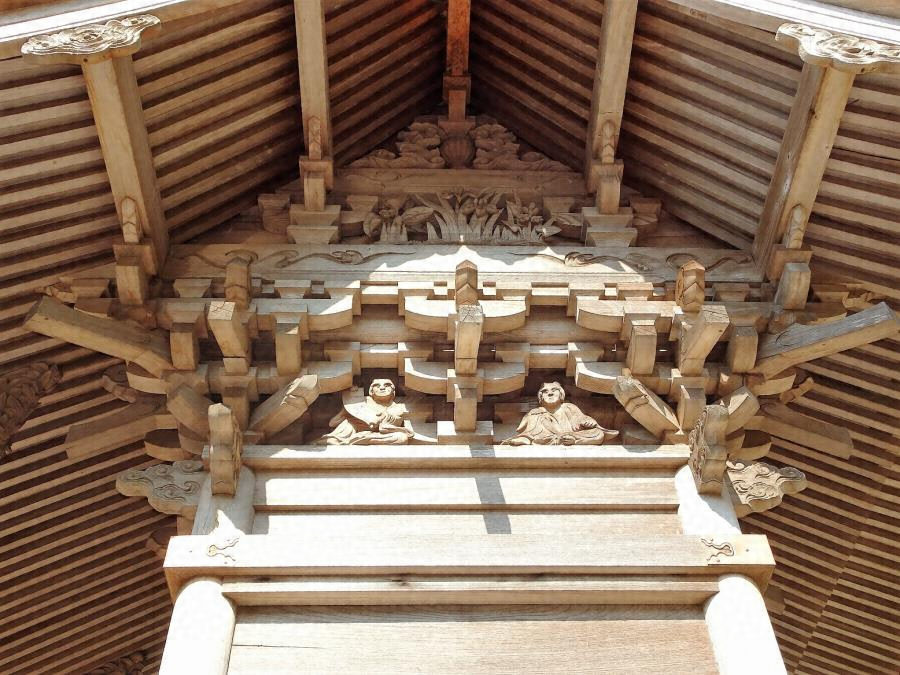 市南東部の椿町中心部の境内奥に北面して建つ。一間社流造檜皮葺(鉄板仮葺)で、四周縁を腰組で支持する。組物は柱上の斜め方向にも手先を出す尾垂木付二手先の詰組、妻飾は二重虹梁。組物間や扉回りを彫刻で密に飾る。複雑な構造と豊かな装飾をもつ社殿。