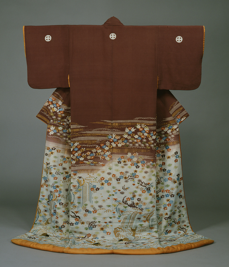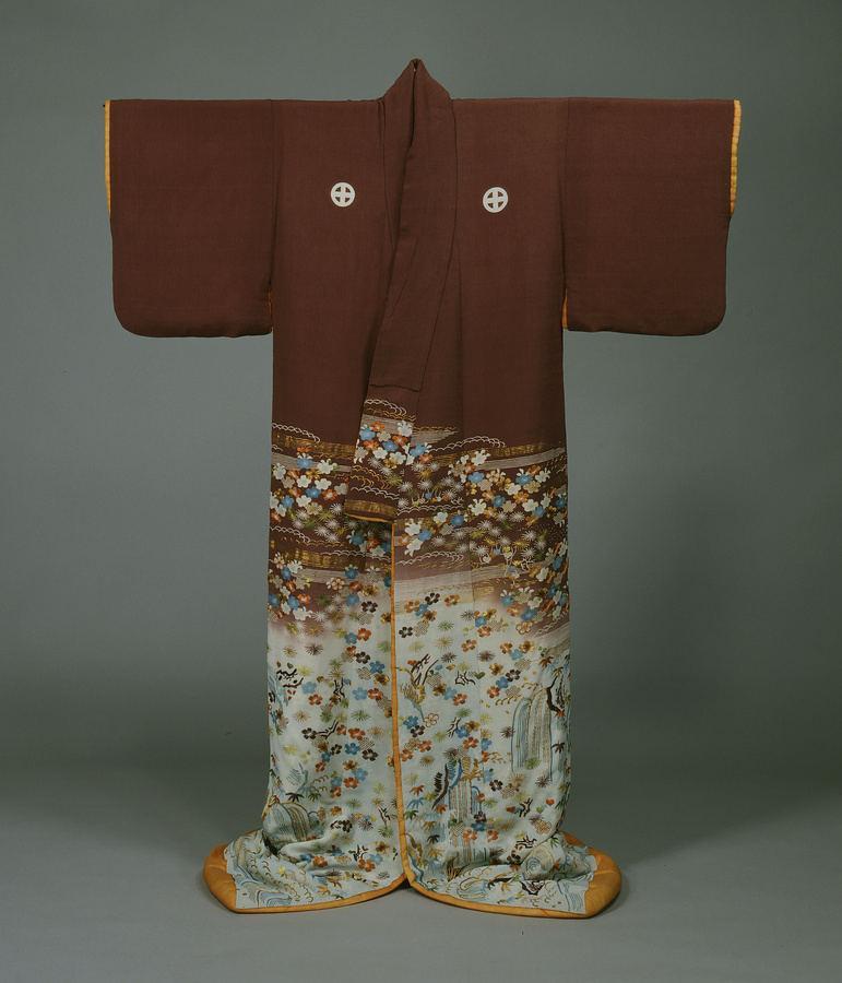 小袖 染分縮緬地鯉瀧草花模様 丸十字紋付をもっと見る