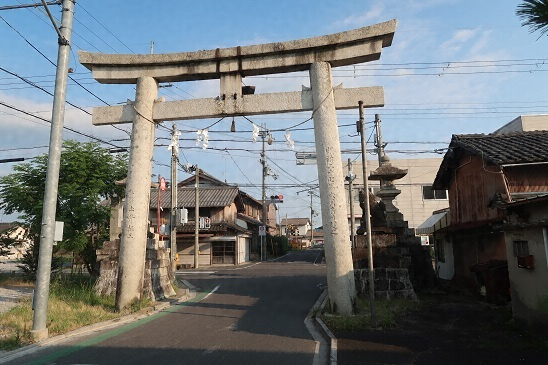 八風街道沿いにある参道入口に南面して建つ。石造の明神鳥居で、足元径0・6メートルの内転び円柱に貫を通し、反りのある島木笠木を載せる。北に延びる参道の先に赤神山を臨み、神社の入口を象徴するとともに参道景観を彩る大鳥居として参拝者に親しまれる。