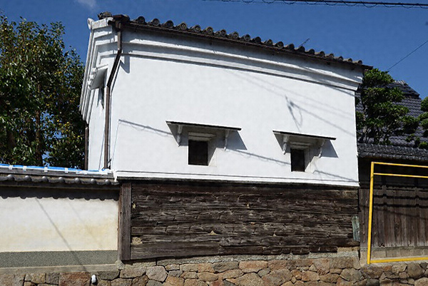 敷地東南隅、主屋座敷棟の東側に西面して建つ家財蔵。土蔵造二階建、切妻造本瓦葺で、外壁は漆喰塗に鉢巻三段を廻し、腰に舟板を横使いに張る。内部は上下階板敷、小屋組は棟木、母屋桁上に流し板を張る。主屋とともに街道沿いの歴史的景観を形成している。