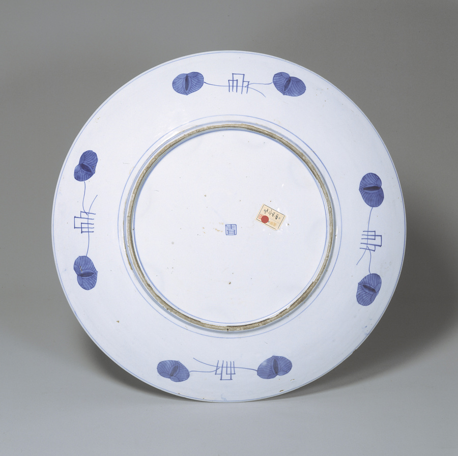 染付水葵に兎図大皿