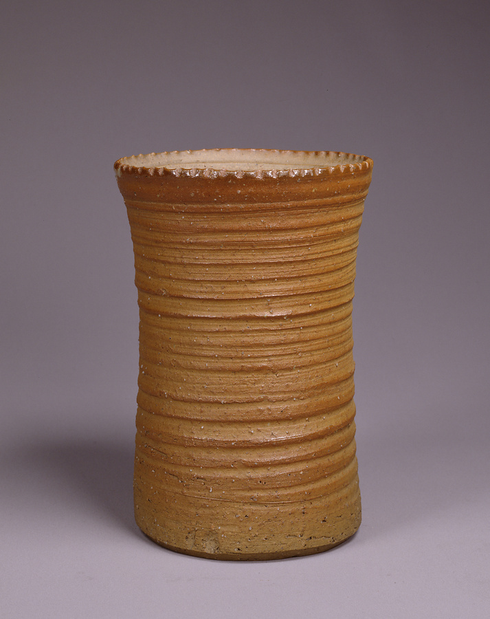 江戸時代前期の京焼は、粟田、音羽、清水など東山の諸窯が主となって稼働していました。この水指は外を露胎とし、内に藁灰釉を掛け、口縁を輪花としています。これは野々村仁清の御室窯にもよく見られる技法で、17世紀後半の茶陶の流行をよく示す貴重な粟田焼の作例です。