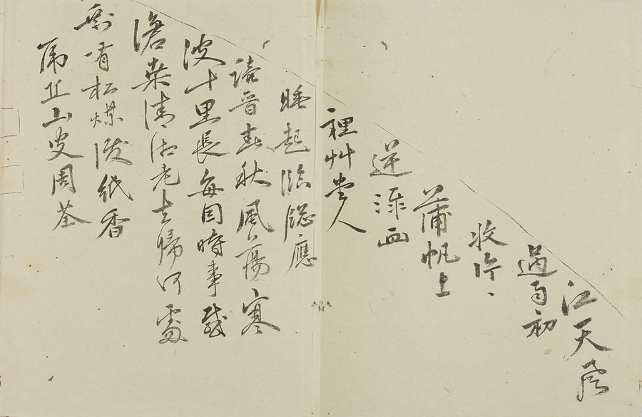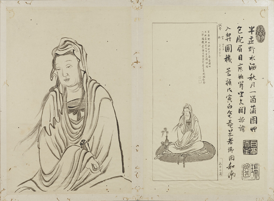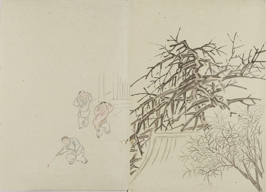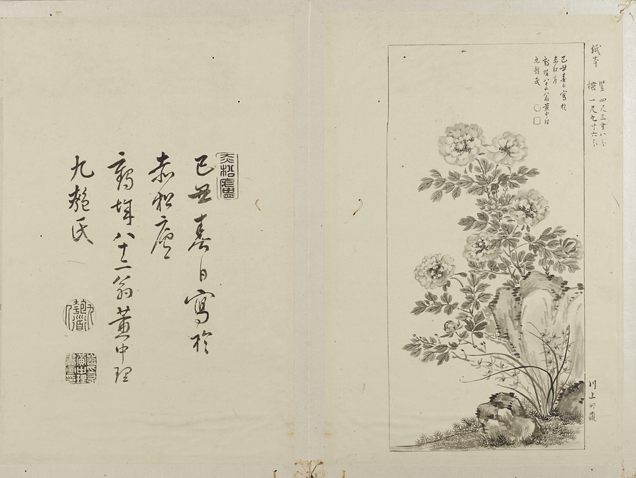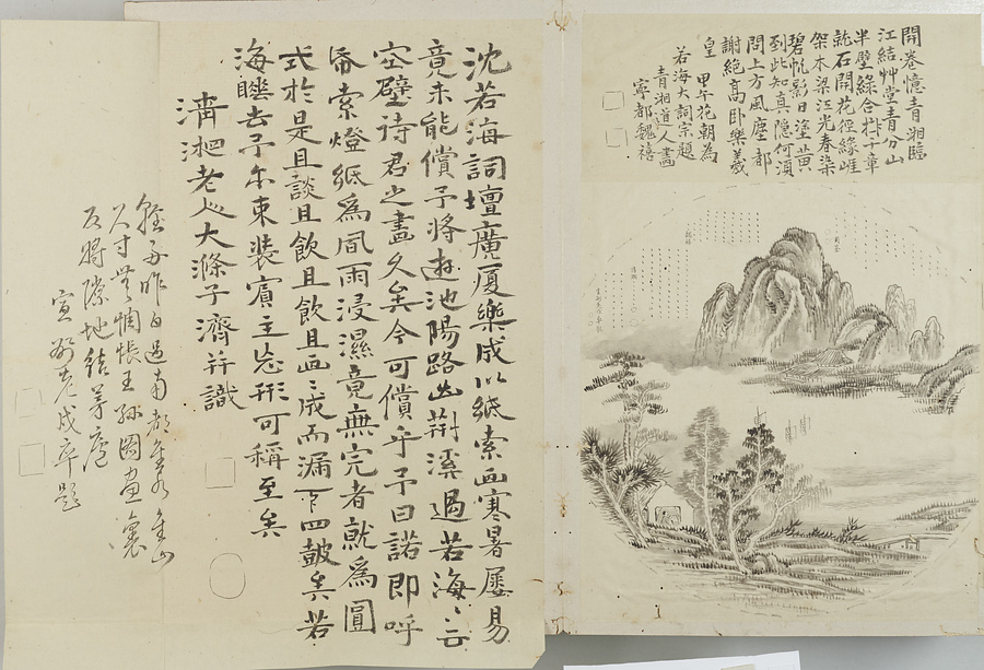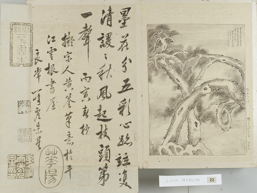 江戸時代までの画人たちは、沈南蘋(しんなんぴん)ら来舶清人(らいはくしんじん)たちから画法を学ぶ一方、さらには、正統文人画に至る画法も模索していました。この図冊は日本に伝来した明清画を写して貼り込んだもので、狩野派が追及した宋元画ではなく、新来の文人画に重きを置いていることに特色があります。