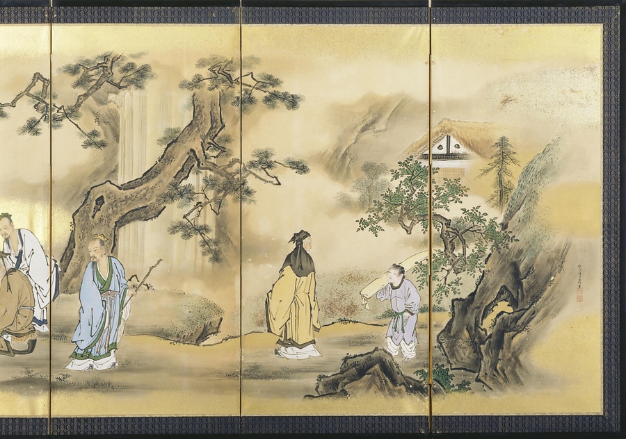 紙本著色琴棋書画図〈海北友松筆/六曲屏風〉