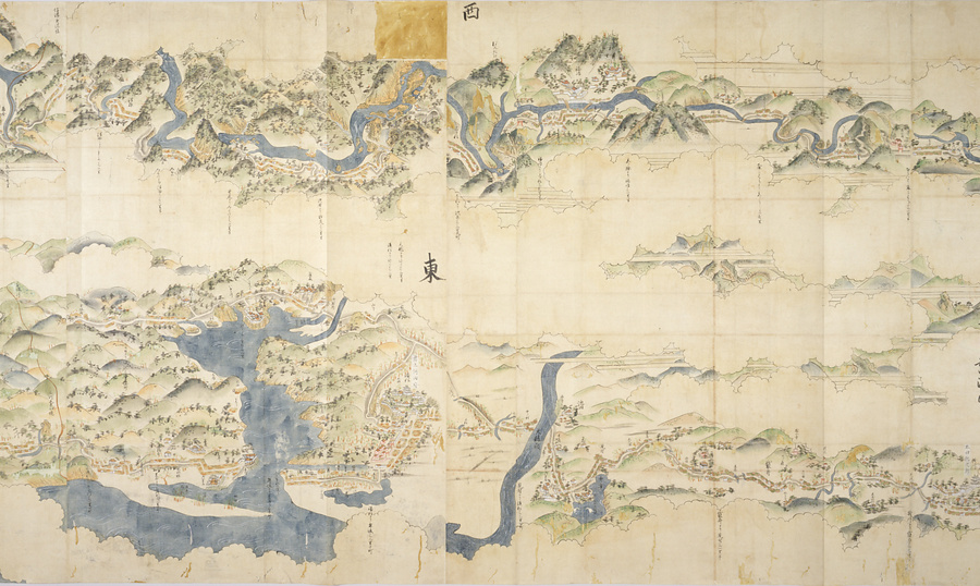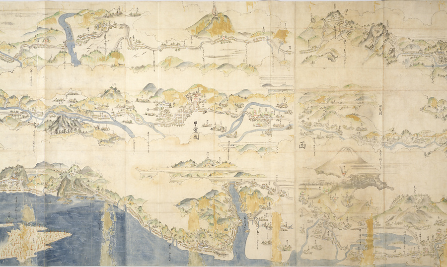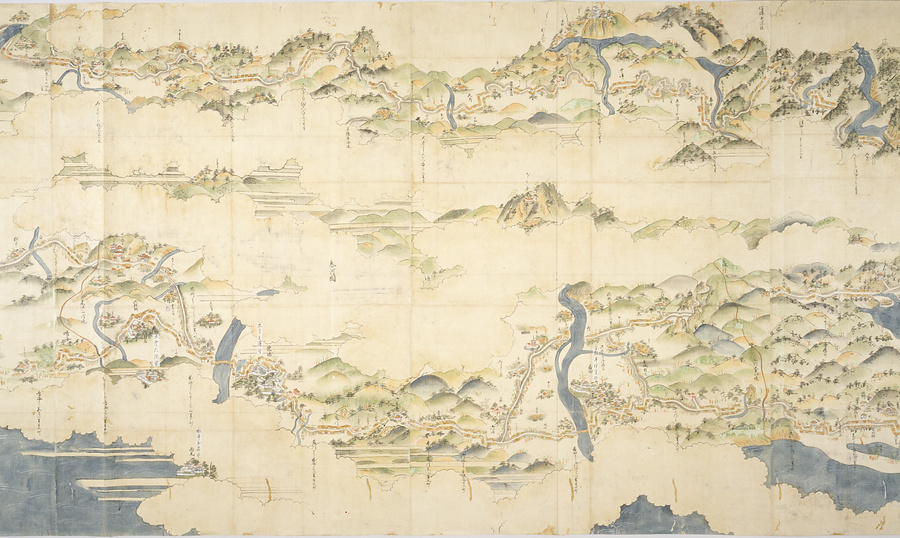 「安永六年丁酉二月日、松平楽翁様ヨリ御申付ニ付画之」という奥書がある。松平楽翁とは寛政の改革を行った松平定信のことである。二六メートルに及ぶ画面には、東海道、中山道、甲州道中、山陽道、瀬戸内海路を含む江戸から長崎までの街道が描かれる。