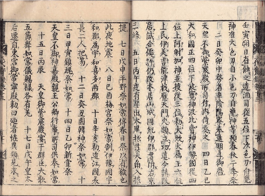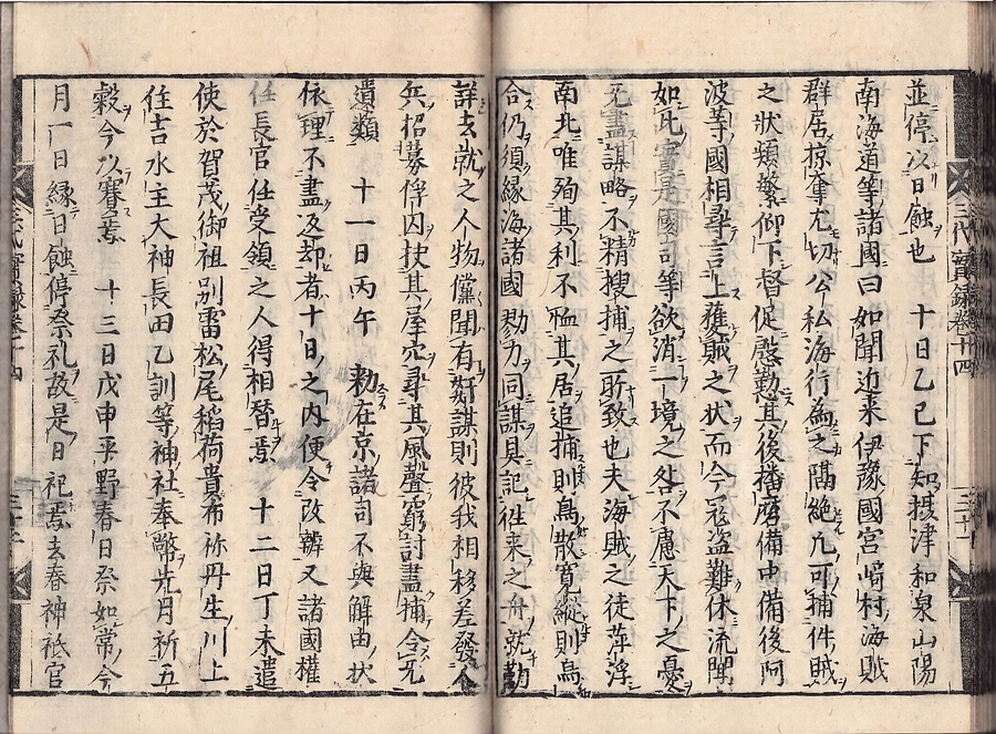 平安時代中期に編纂された清和、陽成、光孝天皇の代である天安2年(858)から仁和3年(887)の国史。日本書紀、続日本紀など六国史のうちの一つ。宇多天皇の命により編纂され、醍醐天皇の延喜元年(901)、藤原時平らの手で完成。本資料は、江戸時代末期の刊。平安時代、9世紀後半の国史であり、様々な記事が見られるが、伊予国関係では貞観8年10月23日条の宇和郡を分割して宇和郡、喜多郡とする記事(巻十三)、貞観9年11月10日条の伊予国宮崎村に海賊が群集掠奪する記事(巻十四)や貞観12年8月28日条の大山積神、磯野神、野間神などに神階叙位する記事(巻十八)が見られる。