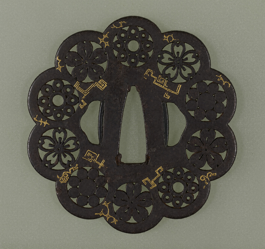 雨下猛虎図鐔〈銘利寿(花押)/〉