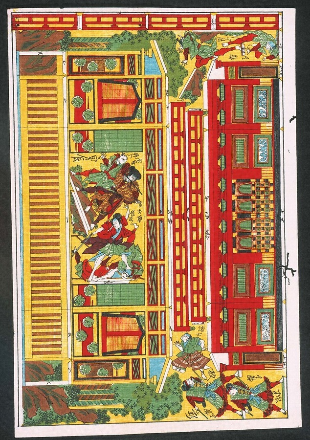切り抜いて、芳流閣の場面を立体的に組み立てる。