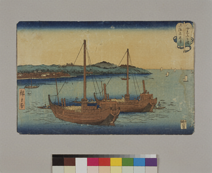 (版画)山海見立相撲上総木更津(初代広重画)