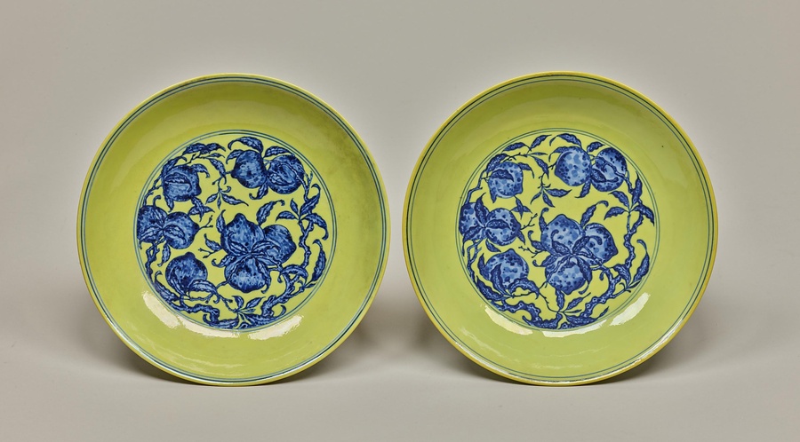 青花黄彩桃果文皿