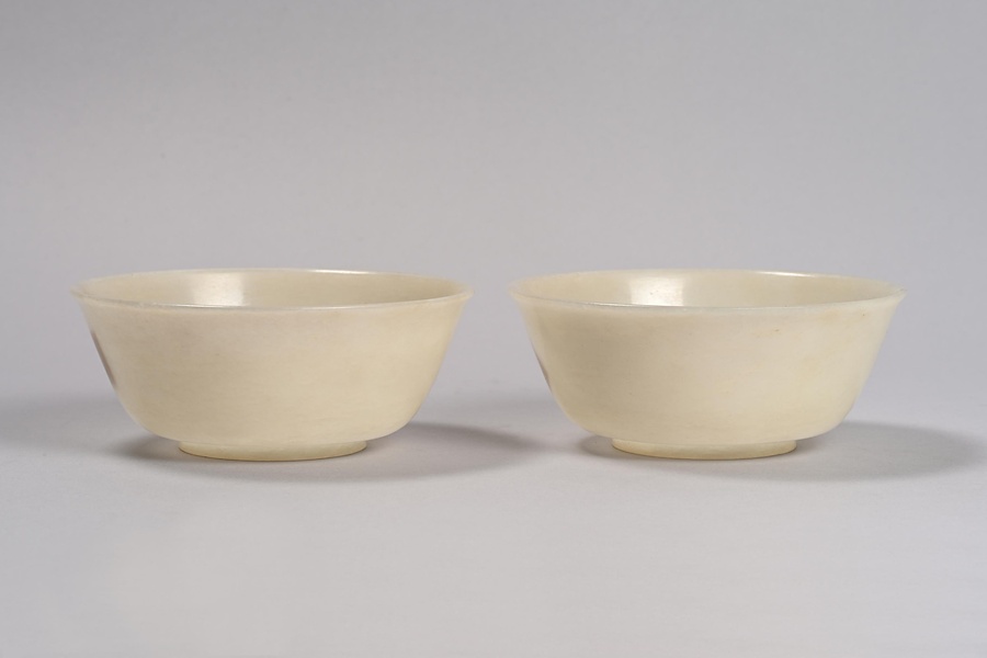 珊瑚紅地留白竹文碗 大清乾隆年製銘