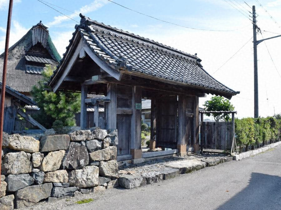表門は、敷地西面の道路との境に建つ。中央に両開板扉を入れ、北脇間は潜戸を吊り、南脇間は板壁で閉じる。建築年代を示す史料はないが、部材の風蝕や経年程度から、19世紀中期頃の江戸時代末期の建立と考えられる。民家の門としては規模が大きく風格があり、代官職を担った上層農家の表門として重要である。
