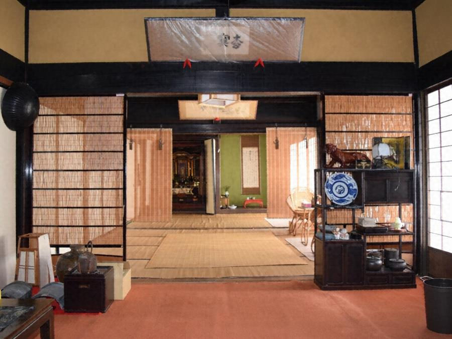 桁行22.8メートル、梁間7.7メートル、入母屋造、茅葺、正背面及び東面庇付、桟瓦葺、背面桁行6.2メートル、梁間3.8メートル角屋)附属、桟瓦葺、東面桁行3.8メートル、梁間7.0メートル落棟附属、入母屋造、桟瓦葺