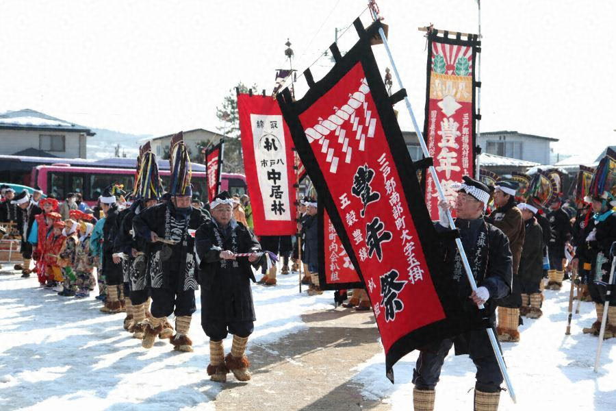 玉掛朳組は地域の子どもから大人まで約30名で構成されている。平成元年に念願であった八戸朳行列に初参加し、それ以来30年間、後継者育成に取り組み、地域の有志や小学生の協力を得て、伝承芸能を継続している。