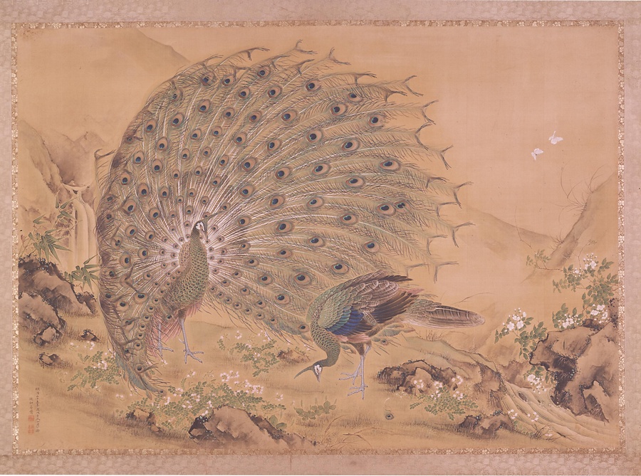 絵画孔雀ノ図横額(かいがくじゃく ずよこがく 明治時代の名称)美術館(シカゴ万博での展示場所)