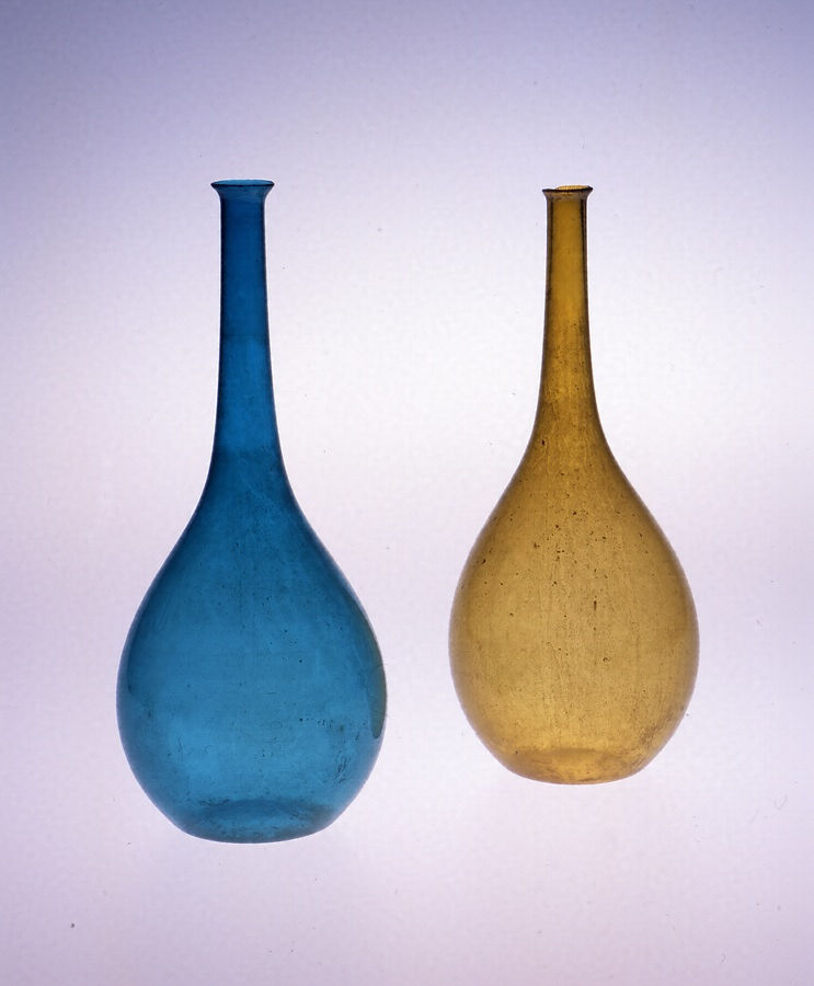 黄色・青色鶴首ガラス徳利