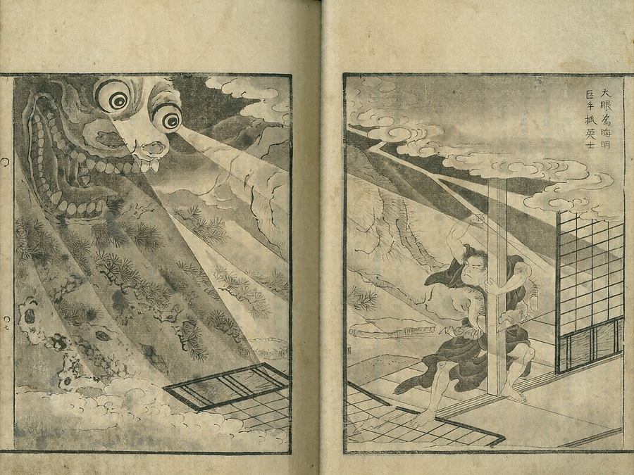 「稲生物怪録」は江戸時代に成立した怪異物語。平尾魯仙の手になる本書の挿絵は明治3年に描かれたが、文章とあわせて一冊の本としての完成は、魯仙没後の明治18年である。なお、書名には「いのうもののけろく」「いのうぶっかいろく」の二種の読み方があるが、本書では文中に「モノゝケ」の振り仮名があるので「いのうもののけろく」とした。