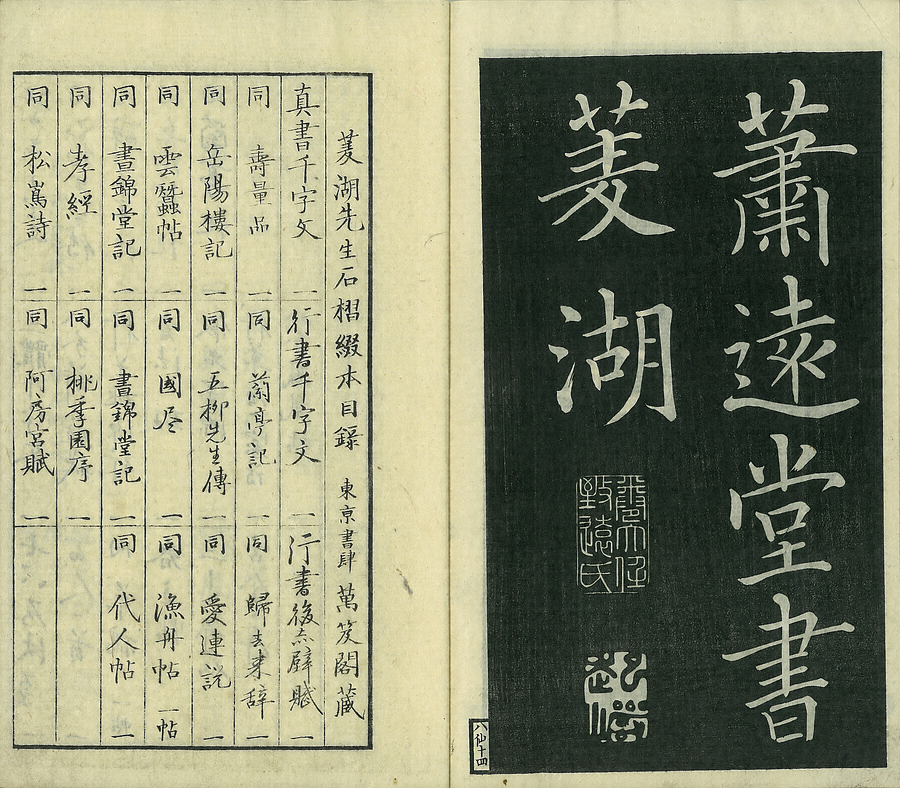 長年、菱湖の法帖は 200 種類以上刊行されたといわれてきたが、ようやくその全貌に近づ いている。北川博邦氏が平成 22 年に「巻菱湖法帖目録」を刊行したことが大きい。目録に は北川氏が知る全ての菱湖法帖を記し、その全てにタイトルも付けている。それに足して 平成 25 年時点では 156 種にタイトルがついている。この他にも、北川氏と巻菱湖記念時代 館のタイトル不明のものが合計で 20 種以上は確認されていることから、180 種は確実に刊 行されたことになる。これは 1 回分の刊行の話であり、当然版を変え、繰り返し刷られた ものもあれば、1 回の刷で刊行をやめてしまったものもあるかと思う。その繰り返し刷 られ、刊行年の違うものや版元(出版社)が違うもの、それに加え刊行形態(折帖・冊子) の違うものも含めると 500 種程に分けることが出来る。なぜここまで多くの菱湖法帖が刊 行されたかというと、大前提として菱湖流が菱湖没後も流行り、主流であったという事が あるが、没後に弟子たちが持っていた肉筆の手本を刊行したであろうことと、明治に入り 国の教科書に菱湖風が用いられたことも一つの要因であろう。