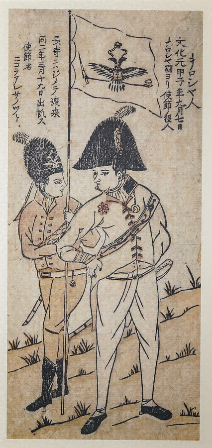「文化元甲子年九月七日大ロシヤ国ヨリ使節ノ役人 長崎ニハジメテ渡来 同二年三月十九日出帆ス 使節名 ニコラアレサノツト」