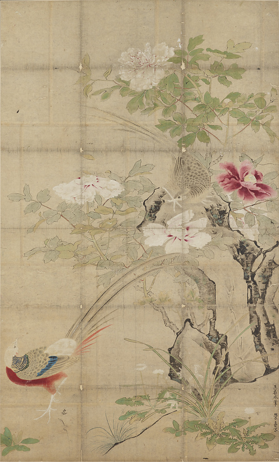 絹本著色蓮池水禽図〈「徳謙」ノ款印アリ/〉