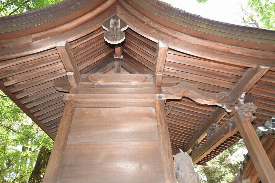 境内西側、若宮社裏の微高地に南面し、二間社流造、銅板葺。周囲に刎高欄付の縁を廻らし、隅行の三手先腰組で支持する。庇は総桁行を一間とし向拝柱に虹梁形頭貫を渡し、蟇股二個をおき、身舎柱と海老虹梁で繋ぐ。間口二間の身舎、縁腰組に独自性を示す社殿。