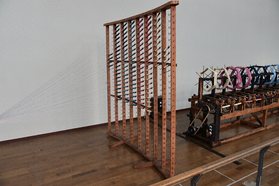 織物のたて糸の柄に合わせて、管糸を順番にセットする道具です。